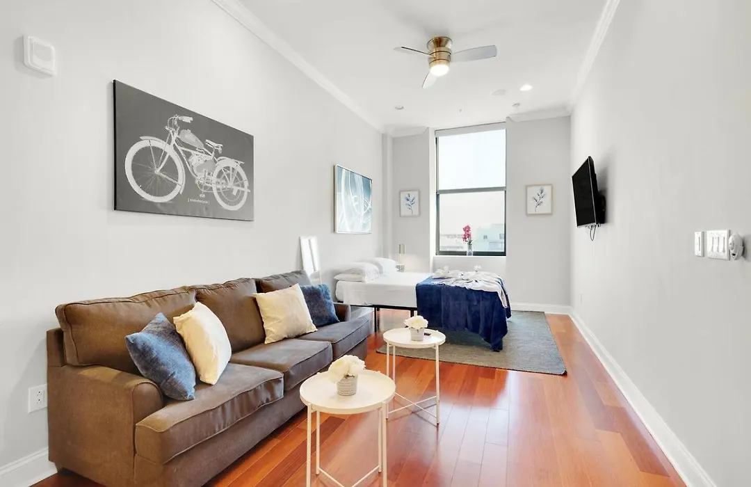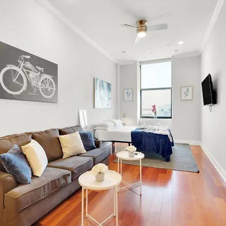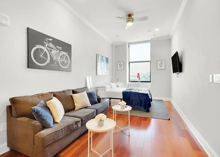 The 1-room Xl Studio - Stylish Studio With Rooftop Pool Philadelphia is located approximately 6 km from Philadelphia, PA train station and around 5 minutes' walk from Crane Arts Building. Situated within reach of Liberty Lands Public Park, the apartment offers a private swimming pool for guests' enjoyment.
